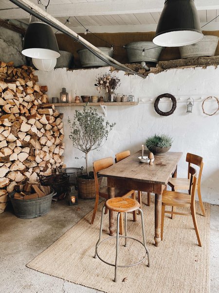 Im Vorraum zur Scheune von @Herzstück finden sich verschiedene Holzarten zu einem gemütlichen Ensemble zusammen. Kerzenlicht, Kaminfeuer und ein Fell verwandeln das Wohnzimmer von @fiedlerooms unmittelbar in einen Wohlfühlort an grauen Novembertagen.