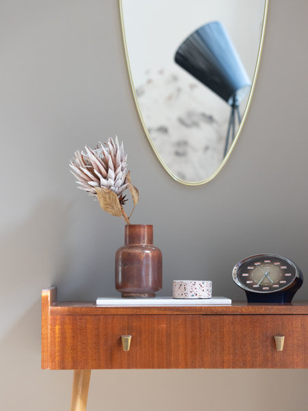Wie wunderbar die Farbe der Wohnküche von @Trinonella mit dem Rest des Farbkonzeptes im Haus matcht, seht ihr ganz ausführlich in ihrer Homestory. Im Schlafzimmer von @blaupause durfte eine neue Wandfarbe einziehen, die wunderbar mit den Mid-Century-Details aus Holz sowie dem Messingrahmen des Spiegels harmoniert.