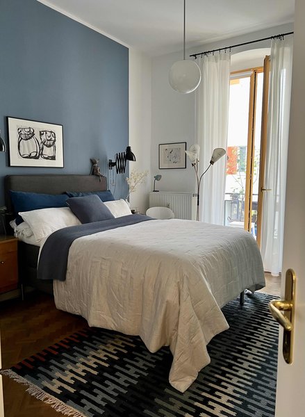 Während bei @Lieblingszuhause das Bild hinter dem Esstisch zum farblichen Hingucker wird, kombiniert @Bylle im Schlafzimmer unterschiedliche Blautöne und Musterungen in Form von Wandfarbe und Textilien.