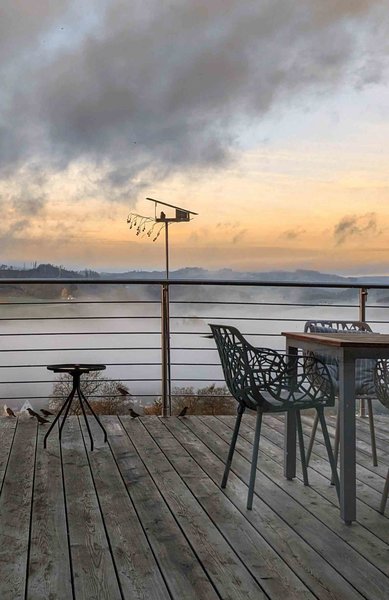 Eine Vintage-Werkbank dient bei @tirolliving als gesellige Kücheninsel. @Sunborn hat für uns den stimmungsvollen Morgennebel auf ihrer Holzterrasse eingefangen.