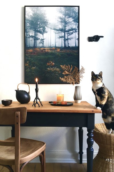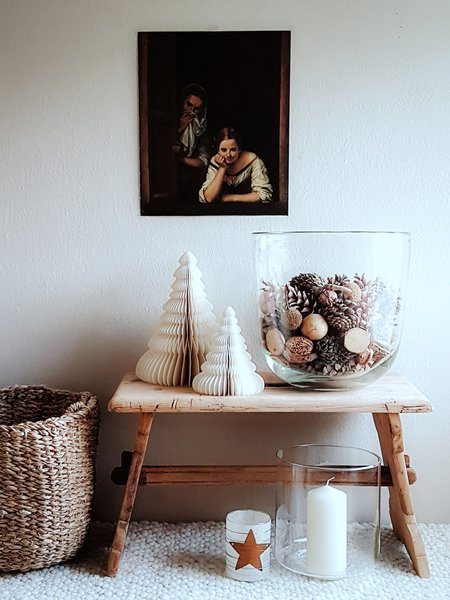 Glücksfund: Bei einer Haushaltsauflösung hat @nah_am_wasser die AJ-Tischleuchte von Louis Poulsen geschenkt bekommen. Sie ist ein Original aus den 70er-Jahren. Dennoch stiehlt auf dem Bild nichts der leuchtenden Dahlie die Show. Bei @filomena durfte im Gästezimmer erste Weihnachtsdeko einziehen. Von der Dekoidee mit dem Glasgefäß voller Zapfen sind anscheinend auch die zwei Personen im Gemälde angetan.