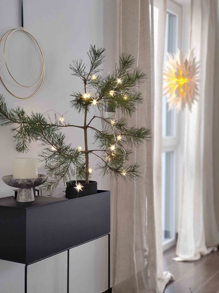 Besinnliche Adventszeit: Eine um Kiefernzweige drapierte Sternenlichterkette in ferm LIVINGs Plant Box bei @SOMMERform sowie das Räuchermännchen und Kerzenlicht bei @FrauVonUndSu strahlen genau die Ruhe aus, die wir uns jetzt für die Vorweihnachtszeit wünschen.