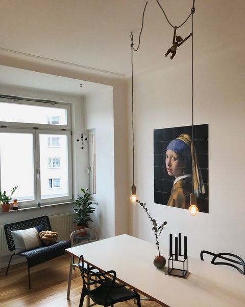 Bei @so_long_marianne ist im Esszimmer das Mädchen mit dem Perlenohrring von Vermeer als IXXI eingezogen. @Frida Besser hat sich in ihrem Wohnzimmer für dasselbe Motiv als Pixel-IXXI entschieden.