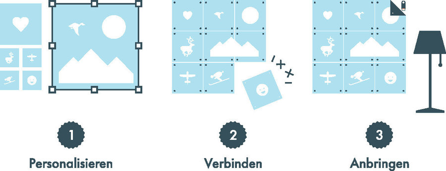 Im Gegensatz zu Postern und Leinwänden besteht ein IXXI aus einzelnen quadratischen Kärtchen, die nach Belieben mit I- und X-förmigen Verbindungsstücken zusammengesteckt werden können. Die einzelnen Elemente sind aus synthetischem Papier gefertigt, das wasserabweisend, UV-beständig und reißfest ist. Das Verbinden der einzelnen Elemente und das Anbringen des gesamten IXXIs geht ganz einfach – und das Beste: ganz ohne Bohren! Im Video seht ihr, wie man Schritt für Schritt dabei vorgeht.