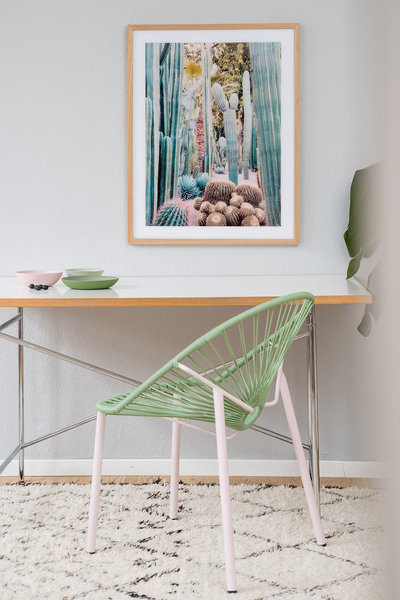 Farblich passend: Der AD-4 Dining Chair von Acapulco Design trifft auf Nicoles Keramikmitbringsel aus Bozen.