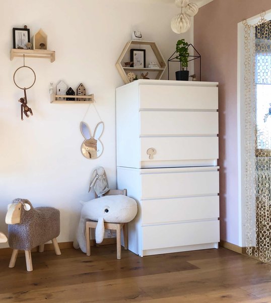 Auch im Kinderzimmer ist die MALM-Kommode ein wahrer Allrounder: Bei @Karyna wird die Kommode mit einer Wickelauflage kurzerhand zum Wickeltisch. @_lantliv_ stellt zwei Kommoden übereinander und schafft sich so Platz nach oben. So gibt es genug Stauraum für Windeln, Kleidung und Co.
