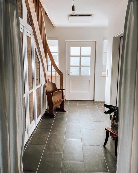 Vor dem Einzug der Freundin hat @take me to the sea noch mal in Lehmoptik gestrichen. @holzhausliebe zeigt uns den tollen Schrank unter der Treppe inklusive altem Kinostuhl.