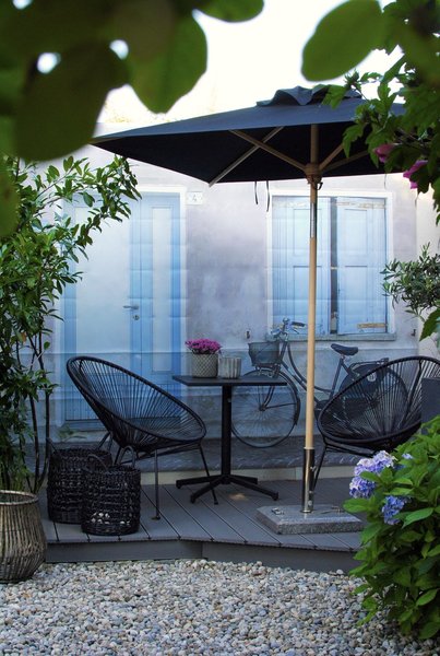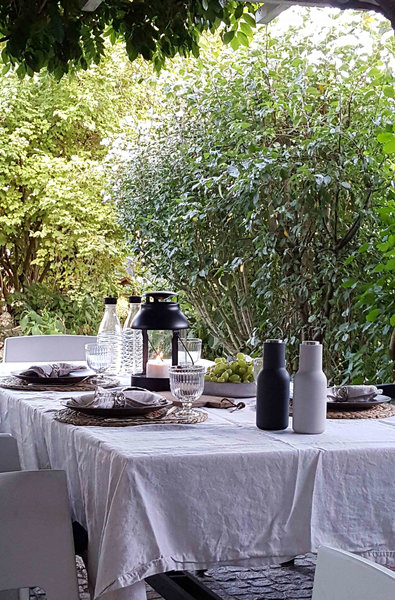Mit dieser Tischdeko hat @rosenrot67 im September ihre Gäste empfangen. @Katl19. hat ihr Garteneck neu gestaltet. Das Fassadenbild hat Katrin in Italien aufgenommen, auf ein Mesh Banner drucken lassen und an der Garagenrückwand angebracht.