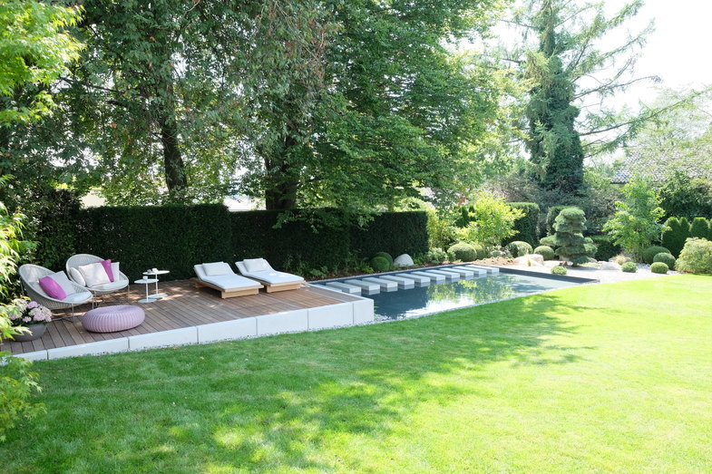 Kerstin S. hat im August ein großes Gartenprojekt abgeschlossen: Die Terrasse mit angeschlossenem Wasserbecken ist fertig!