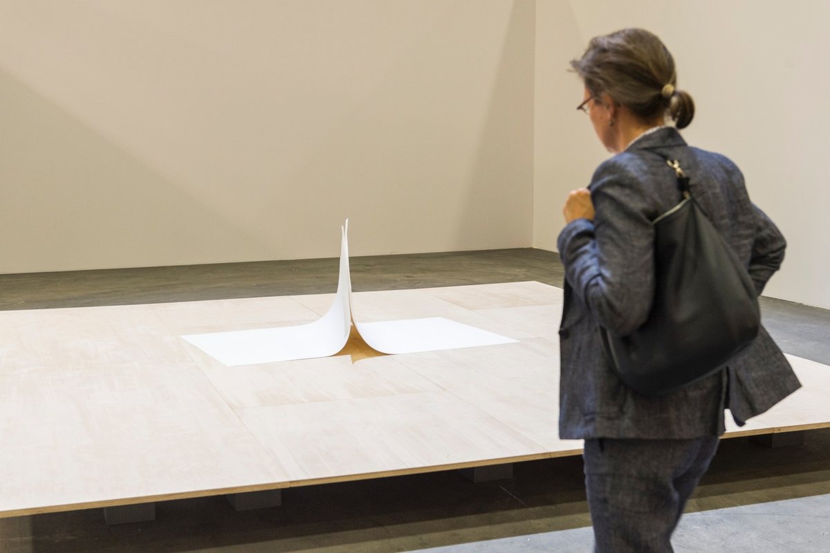 Das "White House" von Ai Weiwei, eine offene Fachwerk-Tempelkonstruktion aus der Qing-Dynastie (1644–1911), die auf Glaskugeln lagert. Dahinter zu sehen Frank Stellas Damascus Gate. Davide Balula, Mimed Sculpture, 2016 könnt ihr hier auch in bewegt sehen. Die Darsteller versuchen die Umrisse, Textur und Material bekannter Skulpturen beispielsweise Giacometti's Le-nez (1947), Eva Hesses Hang up (1966) and Louise Bourgeois' Unconscious Landscape (1967-8) nachzustellen und so eine neue Beziehung zu dem Objekt aufzubauen.