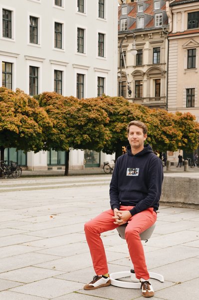 Der Wittelsbacherplatz mit Blick auf die dahinter liegende Theatinerkirche – einer der schönsten Gegenden Münchens, wie wir finden. Und perfekt, um Sitzmöbel auszuprobieren ;)