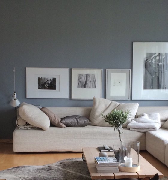 Wenn alle Bilder gleich groß sind, kann man sie symmetrisch in mehreren Reihen mit exakt gleichen Abständen zwischen den Kanten an die Wand hängen. Hat man viele verschiedene Formate, können die Rahmenkanten genutzt werden, um imaginäre Bezugslinien zu schaffen und so z.B. ein großes Quadrat oder Rechteck zu bilden.