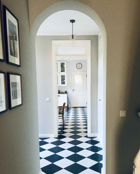 Auf der Jagd nach den ersten Sonnenstrahlen des Tages hat @TaFrie Living ihre hübschen Schachbrettfliesen von VIA aus verschiedenen Perspektiven eingefangen. Das ockerfarbene Muster harmoniert wunderbar mit den Flügeltüren und den hellen Holzelementen im Flur.