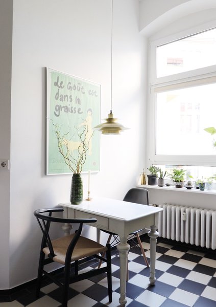 Einladend und gemütlich: @Judith Katzenjammer s zeitlos schöner Schachbrettboden verleiht ihrer Altbauküche mit Vintage-Charme eine ganz besondere Note.