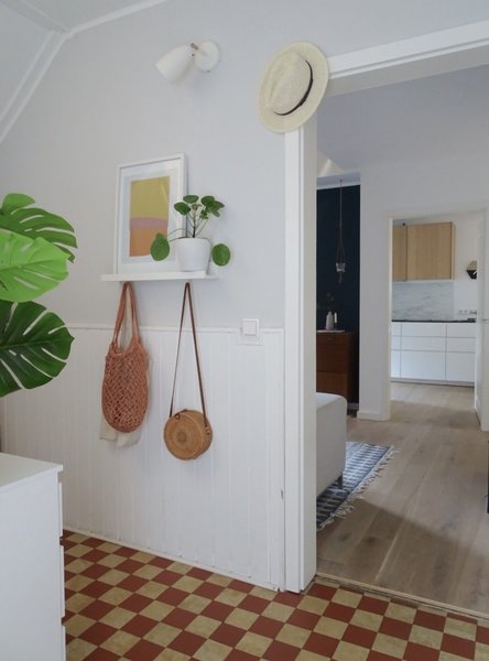 [@waterloo]s Fliesenboden im Flur berichtet von vergangenen Zeiten und kreiert einen spannenden Stilmix mit ihrer skandinavisch-gemütlichen Einrichtung. Trotz der charmanten Reminiszenz an das Vergangene und der hübschen Mischung aus Rot und Elfenbein denkt sie immer mal wieder über die Erneuerung der Fliesen nach.