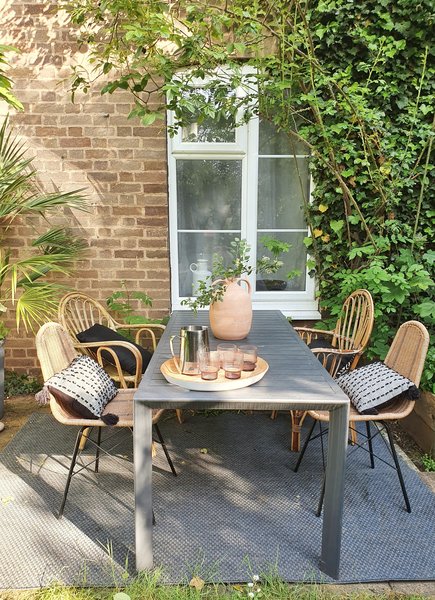 Umgeben von viel Grün hat sich @raumatmosphäre mit der geschwungenen Gartenliege ein herrliches Wohlfühleck im Garten eingerichtet. Umgeben von weißen Blüten hat es sich @oceanside im Hofgarten gemütlich gemacht.