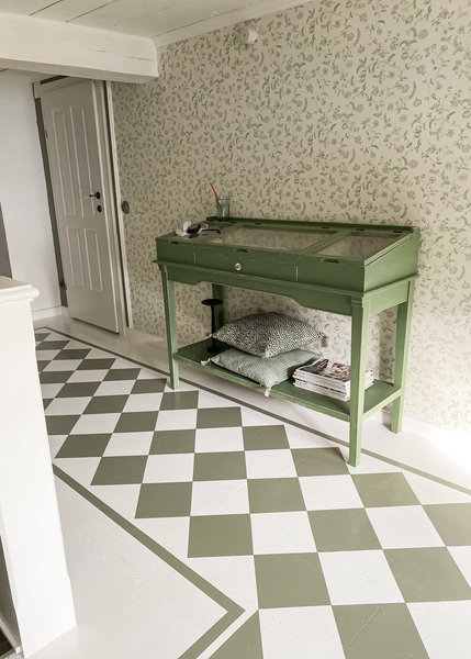 Beruhigende Grünnuancen: Bei @Parsley of Happiness trifft ein im Karomuster gestrichener Holzboden auf eine florale Tapete. Die Wohnzimmerwände von @philipphofstetter ziert seit Kurzem ein sanftes Graugrün. Hier seht ihr, wie es zuvor aussah.