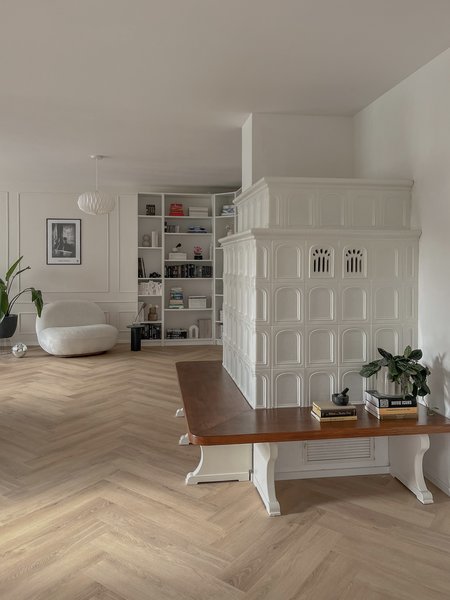 Wie gerne würden wir jetzt auf dem grünen Sessel im Wintergarten von @zweiter.Stock_links sitzen und den entspannten Blick ins Grüne hinaus schweifen lassen. Kleines Makeover, große Wirkung: @Sue.and.Stu hat den zuvor braunen Kachelofen mit Ofenfarbe weiß gestrichen.