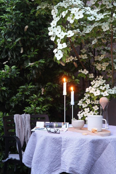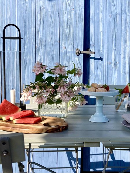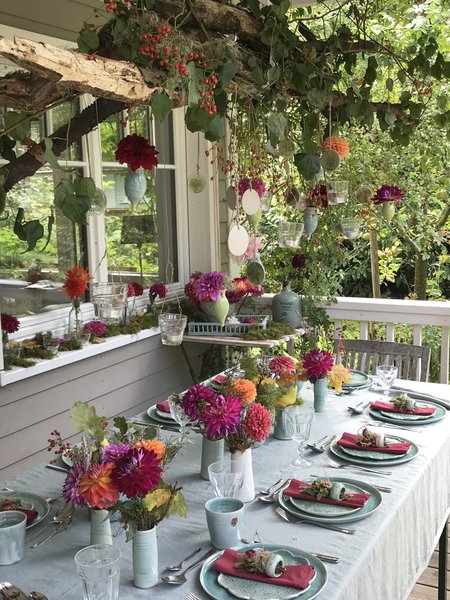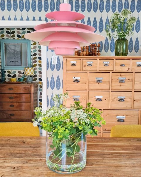 Bei @My Cottage Garden wandern die Dahlien aus dem eigenen Garten direkt auf die Sommertafel. Bei @missschneider sind kürzlich von Hand gefertigte Leuchtenschirme aus Filz über den Esstisch gezogen.