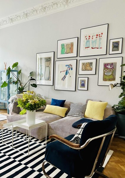 Die hellgelben Kissen auf dem Sofa von @Bylle bringen einen Frischekick ins Wohnzimmer und matchen zudem hervorragend mit den gestreiften Textilien. Der leuchtgelbe Kerzenständer im String-Regal bei @Sigi H.ome zieht alle Blicke auf sich.