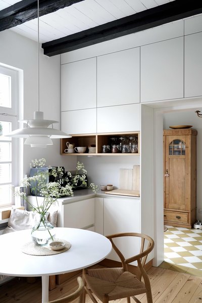 Luftiges Weiß, Holzelemente und schwarze Akzente zieren das Wohnzimmer von @Never talk to a client about a und den Flur von @fiedlerooms .