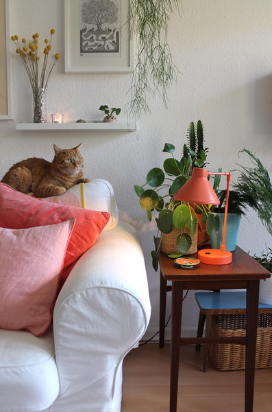 Bei FraeulleinNussboeck grünt es nicht nur in Form der Trendpflanze Pilea, sondern auch auf dem Sofa mit vielen tollen Kissen