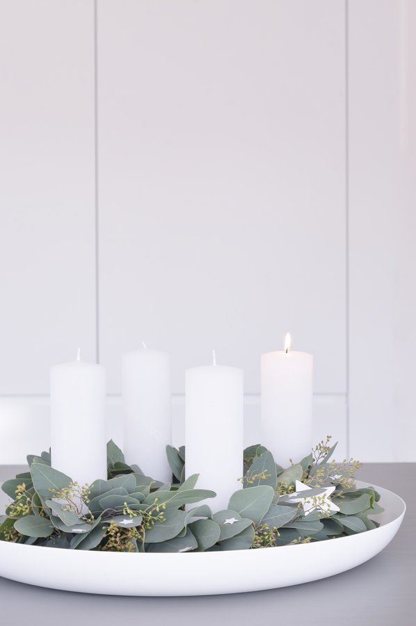 Schönsinn gestaltete ihren Adventskranz mit Eukalyptusblättern, Roomstories dekorierte die Zweige üppig in der Vase