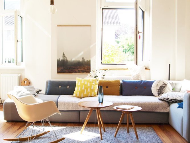 Die gelben und blauen Farbtupfer in den Wohnzimmern von Sonnenleni und wunderkammer leuchten in der Herbstsonne besonders schön