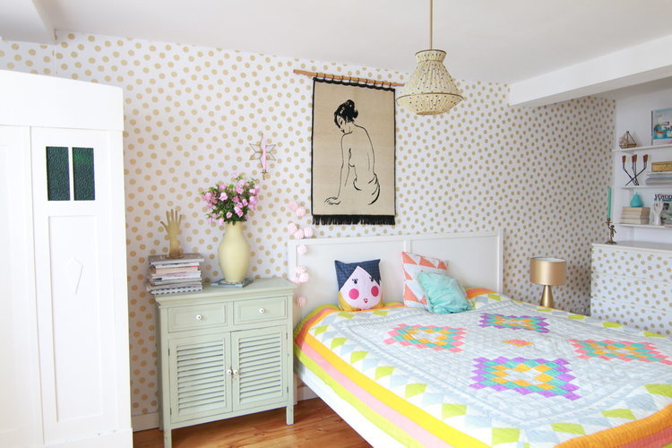 Goldener Oktober Wort wörtlich: Das Schlafzimmer von Oskarlino mit Polka Dot Tapete in Gold
