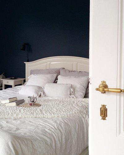 Dunkelgrau und Dunkelblau: die Küche von JohANNIsbeere und das Schlafzimmer von _Carinchen_ liefern den Beweis, dass sich der Mut zur dunklen Wandfarbe auszahlt!