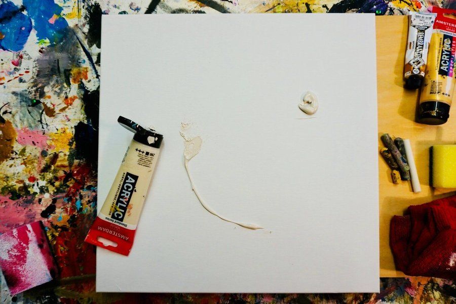 1. Beige Farbe auf die Leinwand geben