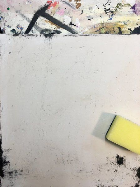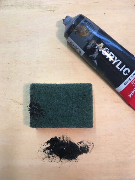 3. Ein wenig schwarze Farbe auf die Rückseite (raue Seite) des Schwammes geben