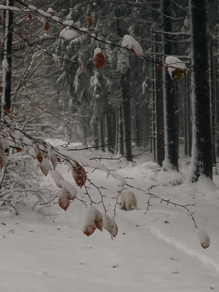 Der erste Schnee und ein Spaziergang im Wald inspirierten Cathrin zu dieser Blumenwolke, die etwa 150 cm lang und 50 cm breit geworden ist.