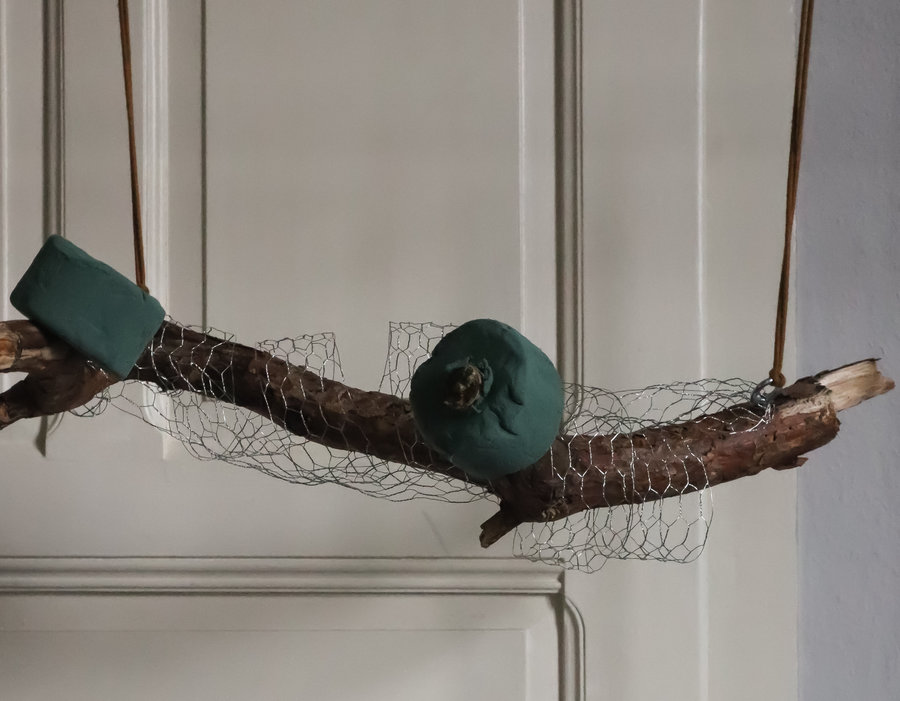 - Dann den Ast locker mit Basteldraht umwickeln und fixieren.