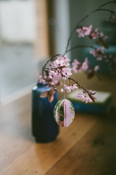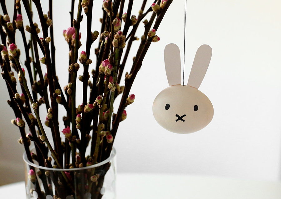 Eine mindestens genauso süße Idee hatte Mitglied Milkandhoney für ihre Osterdeko am Frühlingszweig: Ihr Hühnerei bekommt Hasenohren aus Pappe und ein Miffy-Gesicht aufgemalt und bringt so als Anhänger "Miffy" alle Betrachter zum Schmunzeln. Mehr DIY-Ideen für den Osterstrauch findet ihr hier.