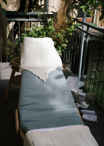 Auf unserem idyllischen und von viel Grün umgebenden Stadtbalkon kümmerte sich Bea von Dr. Hauschka um belebende Augenbehandlungen mit fantastisch riechenden Produkten.