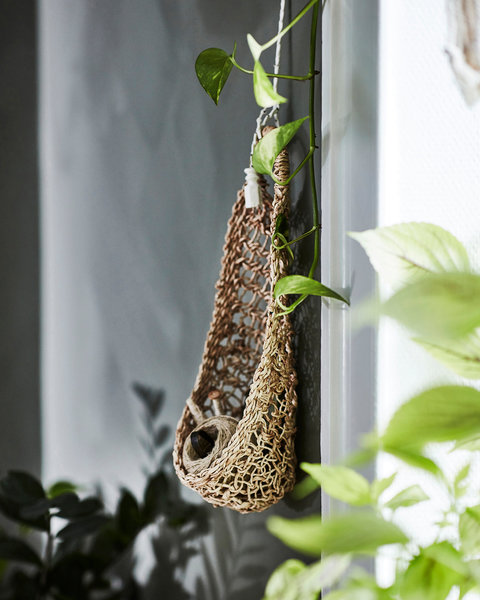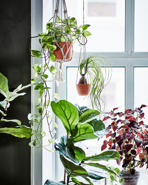 In den Aufhängern für Blumentöpfe können Pflänzchen zu einem Dschungel heranwachsen.