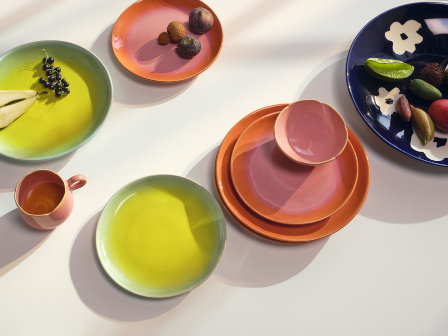 Mahdavis farbenfroher Stil ist eine Hommage an die Macht von Farben, Optimismus und gute Laune zu verbreiten. Mit den Tellern, Servierschalen und Vasen in Lavendel, Mandarine und Limone zieht sommerliche Leichtigkeit im Zuhause ein.