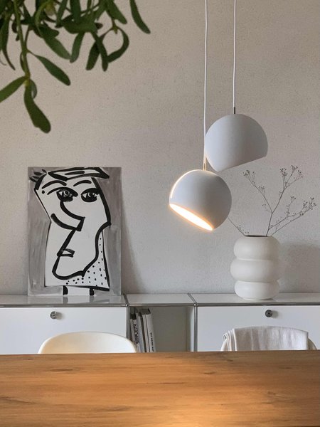 Schöne Geschichte: @Frodette fiel die Leuchte vor Jahren an einem Sonntagabend im „Tatort“ auf. Nach längerer Recherche und Nachhaken beim Filmteam wusste sie dann, dass es sich um die Semi Pendant von Gubi handelt. Nun ziert sie auch ihren Essbereich. @key hat sich für die zwei verstellbaren Pendelleuchten Tilt Globe von Nyta entschieden.