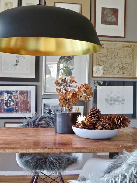 Die Cloche-Pendelleuchte von NORR11 hat der Mann von @Herbstzeitlose vor zehn Jahren fürs neue Haus ausgesucht, als sie noch gar nicht zu bauen angefangen hatten. Noch heute mag Patricia die innere Vergoldung, die wärmendes Licht ausstrahlt und allen am Tisch Sitzenden „einen Glow im Gesicht“ zaubert. Klassische Industrieleuchten: @1935 hat die Kehl-Halbkugelschirmleuchten von Bolichwerke in Größe, Farbe, Aufhängung und Kabel nach ihren eigenen Wünschen konfiguriert und fertigen lassen.