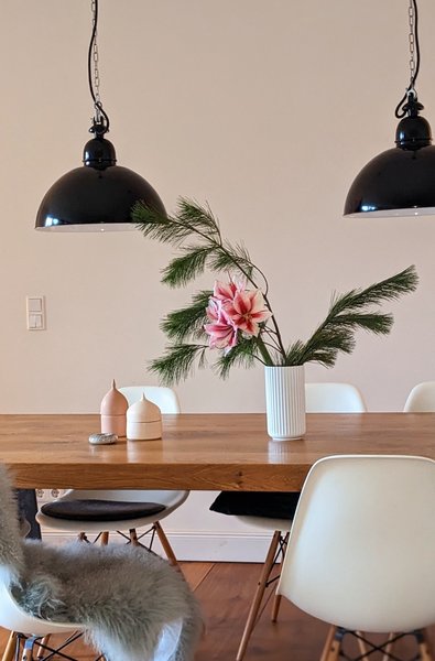Runde Sache: @Bylle und @Imke.Beck haben sich für kugelförmige Esstischleuchten entschieden. Bylle kombiniert ihre Bauhaus-Leuchte zum Bauhaus-Ensemble von Mart Stam, hat sie aber technisch in die Gegenwart geholt: Die Kugelleuchte ist per Smart Home dimmbar. Imke mag das schlichte und zeitlose Design ihrer Leuchte sowie die Tatsache, dass sie leicht zu reinigen ist.