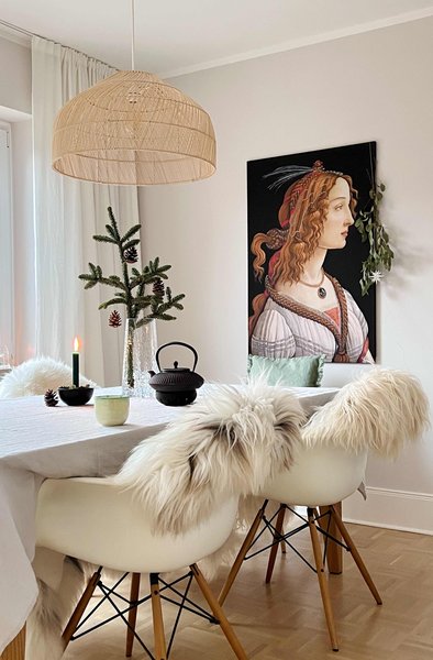 Und wenn man sich weder für eine bestimmte Leuchte noch für einen festen Platz für den Esstisch entscheiden kann? Dann macht man es einfach wie @Katuescha : Ein hübscher Ast mit Blättern und Lichterkette sorgt bei ihr als Provisorium als atmosphärische Lichtquelle über dem Tisch.