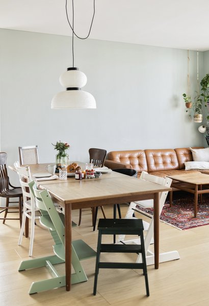 Dinner mit Poesie: Ursprünglich hatte @AnnCa die Zettel'z von Ingo Maurer nicht explizit fürs Esszimmer ausgesucht, allerdings passte sie über dem Esstisch am besten. „Also habe ich quasi das Zimmer für die Lampe ausgewählt und nicht andersherum“, erklärt AnnCa. @cosima11 sah die dimmbaren Caravaggio-Leuchten von Fritz Hansen vor Jahren in einem Restaurant und wusste sofort, dass sie wunderbar über ihrem eigenen langen Holztisch aussehen würden. Schönes Detail: Die drei Leuchtenschirme bilden einen Farbverlauf.