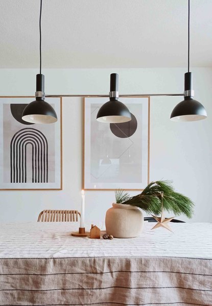 Über dem Esstisch von @anno. sorgt die Formakami JH4 von &Tradition für angenehmes Licht. Dank zwei Glühbirnen, die getrennt voneinander gesteuert und gedimmt werden können, kann jede gewünschte Lichtstimmung eingestellt werden. Die schwarzen Pendelleuchten von @HugosFrieda sind vom schwedischen Hersteller Markslöjd.
