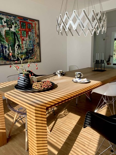@Ankahygge hat sich bereits vor sechs Jahren für einen Esstisch aus Massivholz entschieden, den sie nach wie vor auch wegen der Tischbeine mag. Vor und nach dem Winter bekommt der Tisch jeweils eine pflegende Ölung.