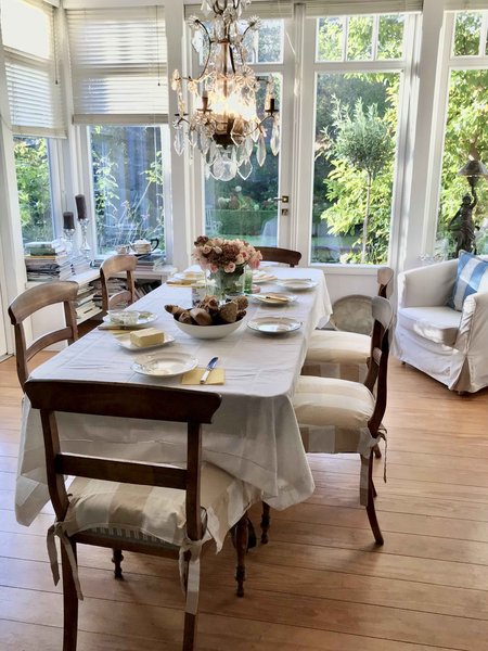 Lange Holztafeln bei @cosima11 und @wohngefährtin : Ursprünglich stand Susannes 3,60 m langer Tisch in einer Schneiderei in Frankreich und diente zum Zuschneiden von Stoffballen. „Er ist angeschlagen, hat viele Dellen und Kratzer und wird gerade deshalb von uns heiß geliebt“, sagt sie. Annettes 3 m langer Tisch aus massiver Eiche stammt aus einem ehemaligen Café in ihrer Stadt, den aufgrund seiner Größe und Schwere niemand haben wollte. Trotz des etwas stressigen Abtransports hat sie die Entscheidung nie bereut.