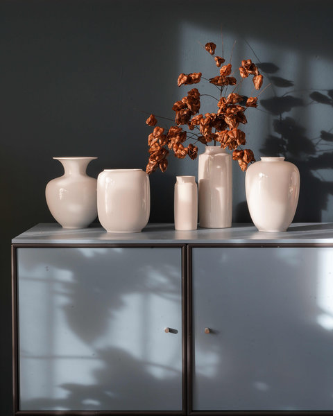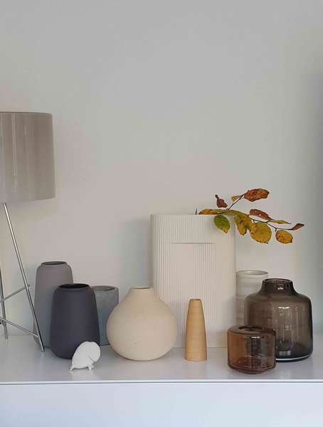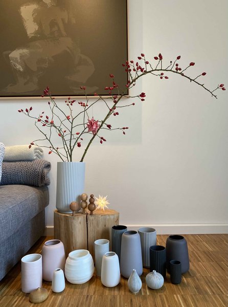 Zu den Vasenlieblingen von @Christel B gehört unter anderem die Ridge von Muuto in Beige. Die weiße Vasenfamilie von Weimar Porzellan hat bei @nah_am_wasser vor der dunklen Wand ihren großen Auftritt.