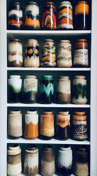 Auch @Katrinsche sammelt ihre Vasen nach Farben und zeigt uns ihre orange-rote 70er-Sammlung. @Findeklee01 beginnt erst so richtig mit ihrer Vasensammlung – es werden sicherlich noch einige dazukommen.