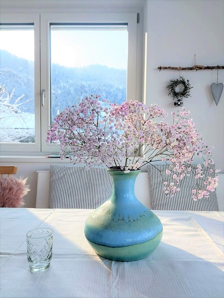 Grün ist nicht nur die Lieblingsfarbe von @yukiko , sondern auch ihre neue Lieblingsvase: Die in Smaragdgrün leuchtende Foam-Vase im Bubble-Look ist von House Doctor und bietet reichlich Platz für größere Blumen oder Zweige. Ein Vasenfavorit von @tinaleben ? Die zwischen Mintgrün und Blau changierende Keramikvase, deren Glasur mit Farbverlauf wunderbar mit dem rosa Schleierkraut matcht.