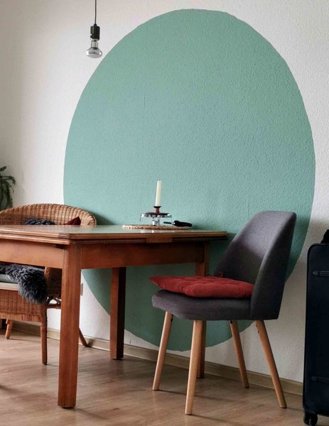 Wie ein Baldachin legt sich das leuchtende Blau an Wand und Decke um das Bett von @Linboet . @kreacaro schenkt mit einem mintfarbenen Wandkreis dem Esstisch seinen großen Auftritt und definiert dadurch den Essbereich im Raum.